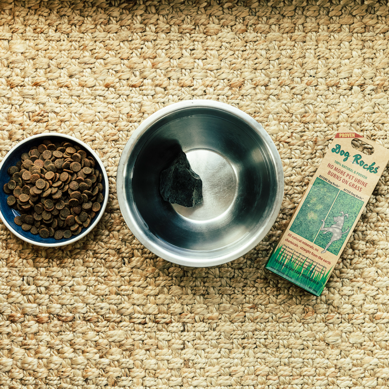 Dog Rocks® filter out impurities from water such as tin, ammonia and nitrates. One pack of Dog Rocks in your dog’s water bowl will keep your lawn lush and free from urine burn patches for up to 2 months.