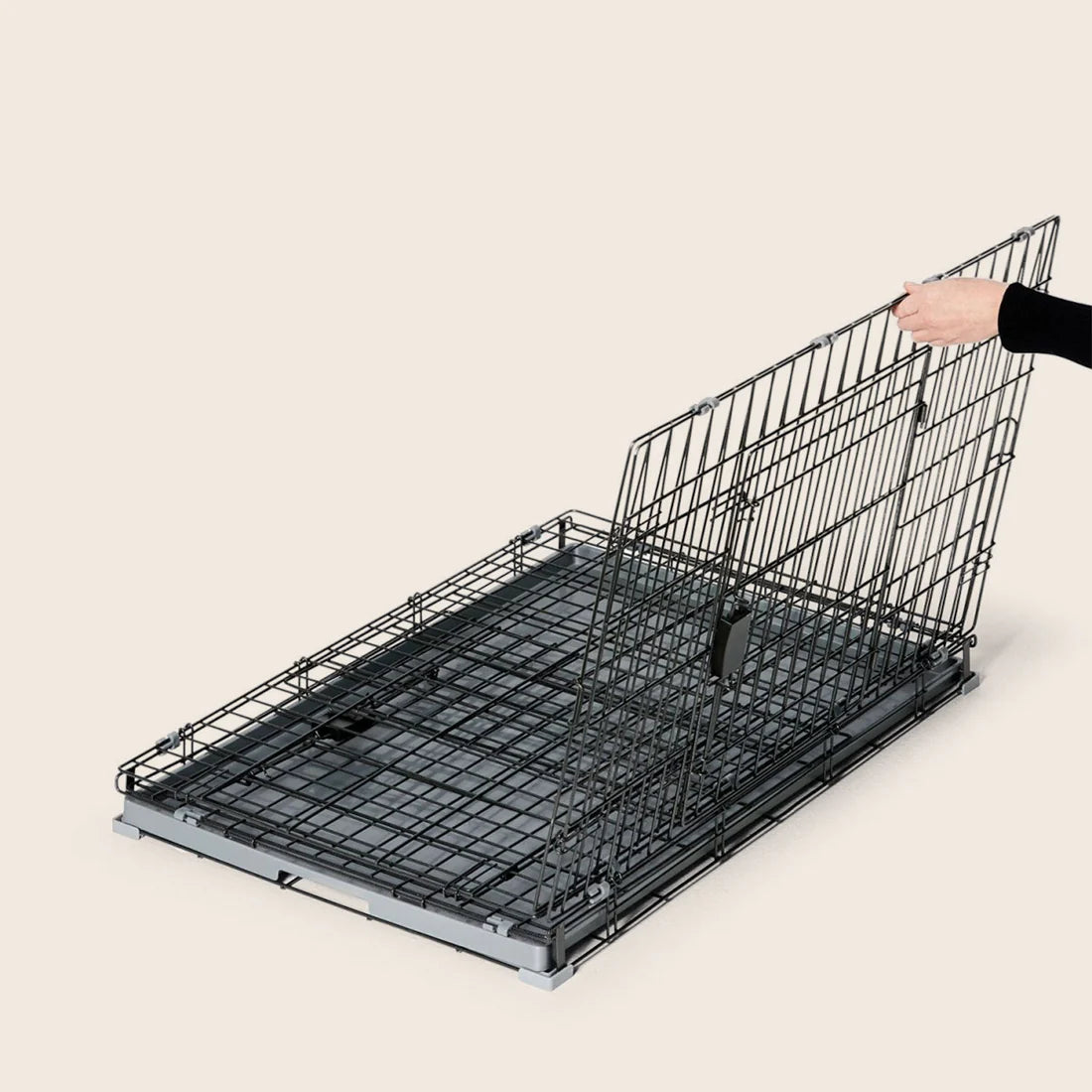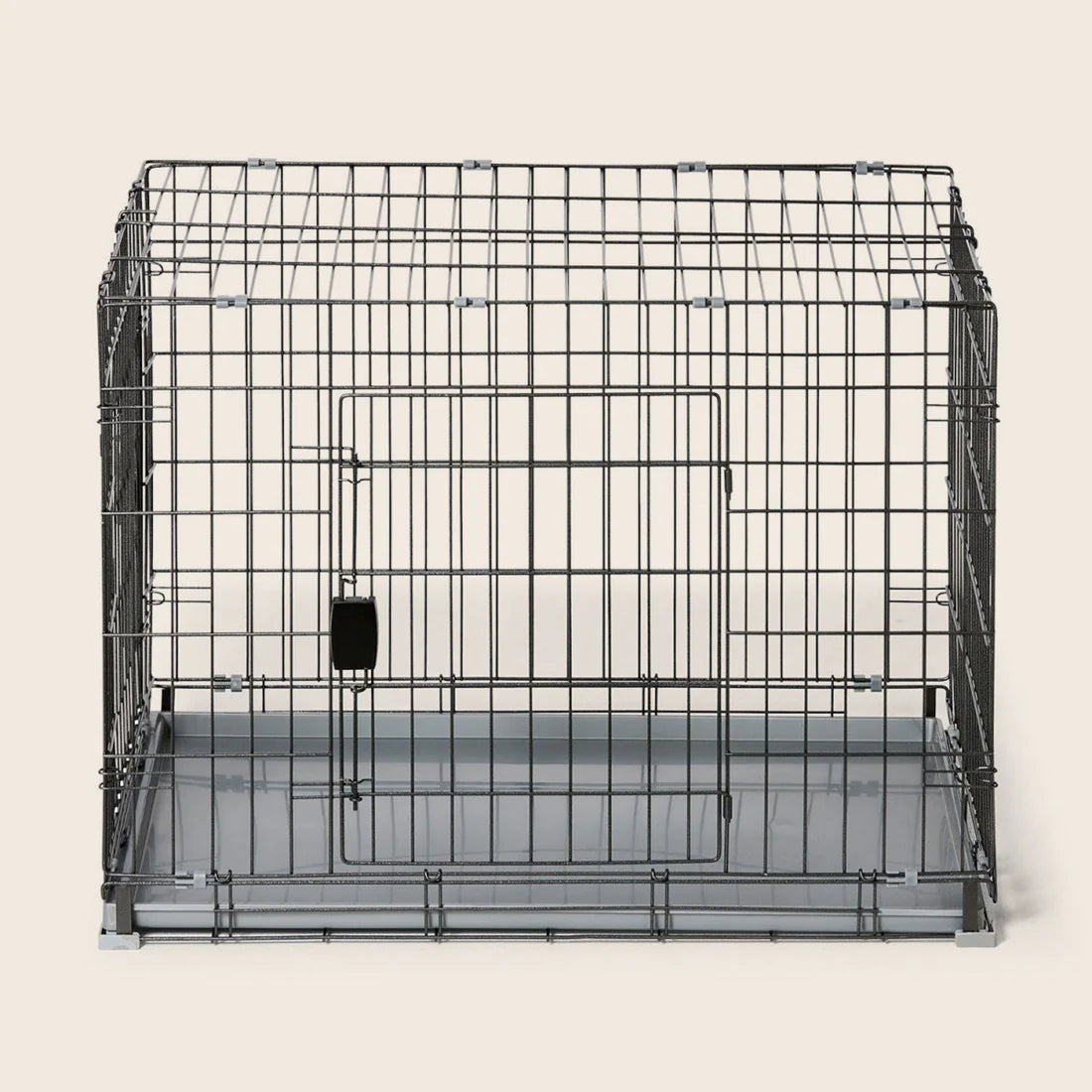 The Snooza 2 in 1 Convertible Training Crate is made of durable double-coated rust-resistant steel wire and comes with a 10-year warranty. The two doors use spring-release handles making them easy to open and close with a single hand, and can also be fully removed for when the crate is used as an indoor calming retreat so that your pet can come and go as they like. The crate has a sturdy tray at the base with high edges to prevent spillage, and by using the handle at front can be smoothly removed and replaced for cleaning purposes.