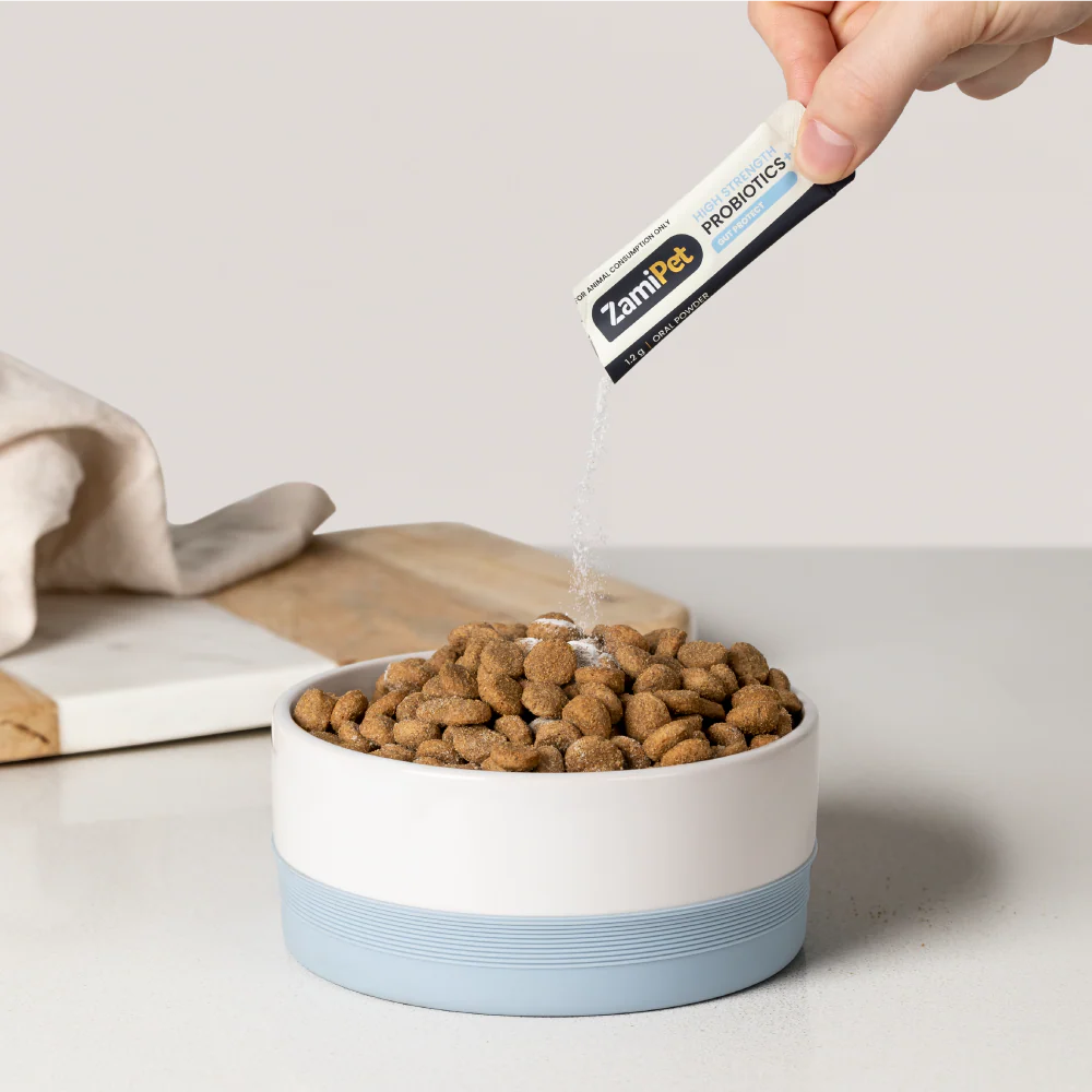 There is a physiological relationship between the gut and the central nervous system referred to as the gut-brain axis. This means the gut’s microbiome may have a direct effect on the nervous system and that a more balanced microbiome can impact your pet’s mood, anxiety levels and response to stress.